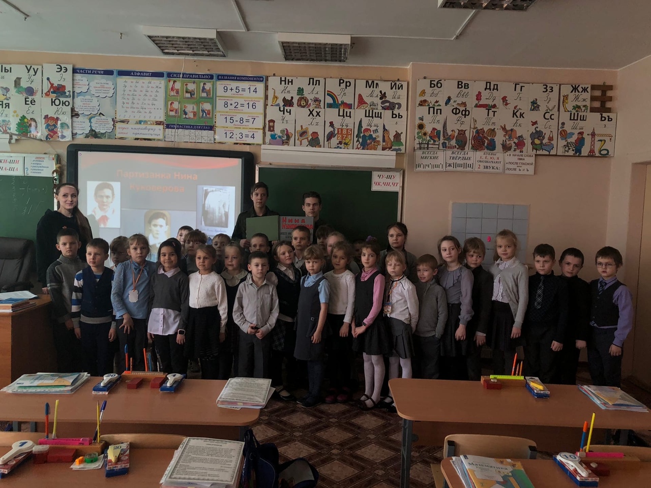 С 10 - 13 марта 2020 года, в рамках цикла мероприятий "Звезда Победы", посвященных 75-летию победы в ВОВ, учащимся начальных классов "Нурменской СОШ" и обучающимся объединений "НЦВР" была представлена презентация "Пионер-герой!" - рассказ о жизни и подвиге Нины Куковеровой. О нелегкой судьбе девочки, чьим именем названа улица в поселке Шапки, рассказали воспитанники поискового отряда "Ягуар". В завершение беседы, учащимся был показан живой альбом памяти о Нине Куковеровой, который с любовью и энтузиазмом был создан учениками 6 класса Шапкинской восьмилетней школы в 1980 году.