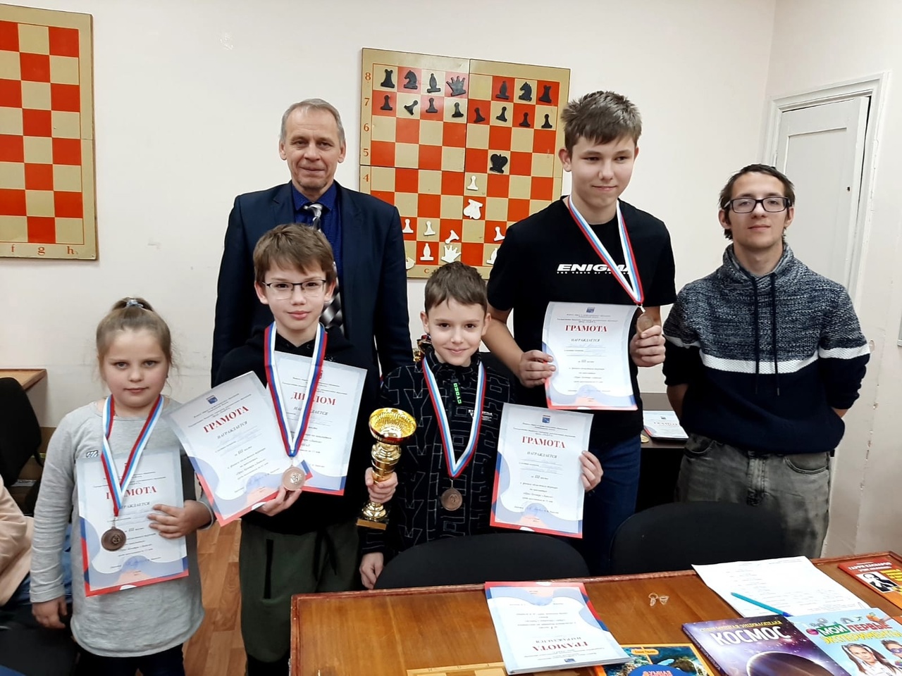За тур до конца 1я команда #ДЮЦ захватила лидерство, опережая своих ближайших преследователей на 1,5 очка. Однако, к огромному сожалению, игра в последнем туре не позволила закрепиться на 1м месте. По итогам у наших ребят 3 место. Команду представляли Куус Эрик, Васильев Никита, Лапин Максим, Комарицына Кристина (тренеры Масляков С.Ю., Дадашов Д.М., Григорьев М.А.)