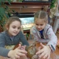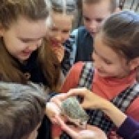 Ребята познакомились со старожилами живого уголка - вороном Гошей и дикобразом Саней, а также с новыми обитателями - африканским ежиком Дорианом и кроликами Чипом и Дейлом.