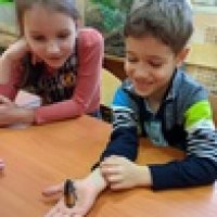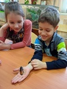 А еще наши гости научились определять возраст черепах, погладили по спинке эублефара и агаму, полюбовались на герозавра, желтопузика, рассмотрели заспиртованную гадюку. Самые смелые любители природы подержали в ладонях палочника, улитку ахатину и мадагаскарского таракана.