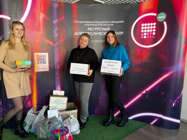 30 марта Председатель первичного отделения РДДМ Тосненского ДЮЦ - Бодунова Светлана Александровна и муниципальный координатор советников директора по воспитанию Тосненского района - Сухорукова Виктория Николаевна передали в Ресурсный добровольческий центр г. Гатчина Талисманы добра для солдат в зоне СВО.