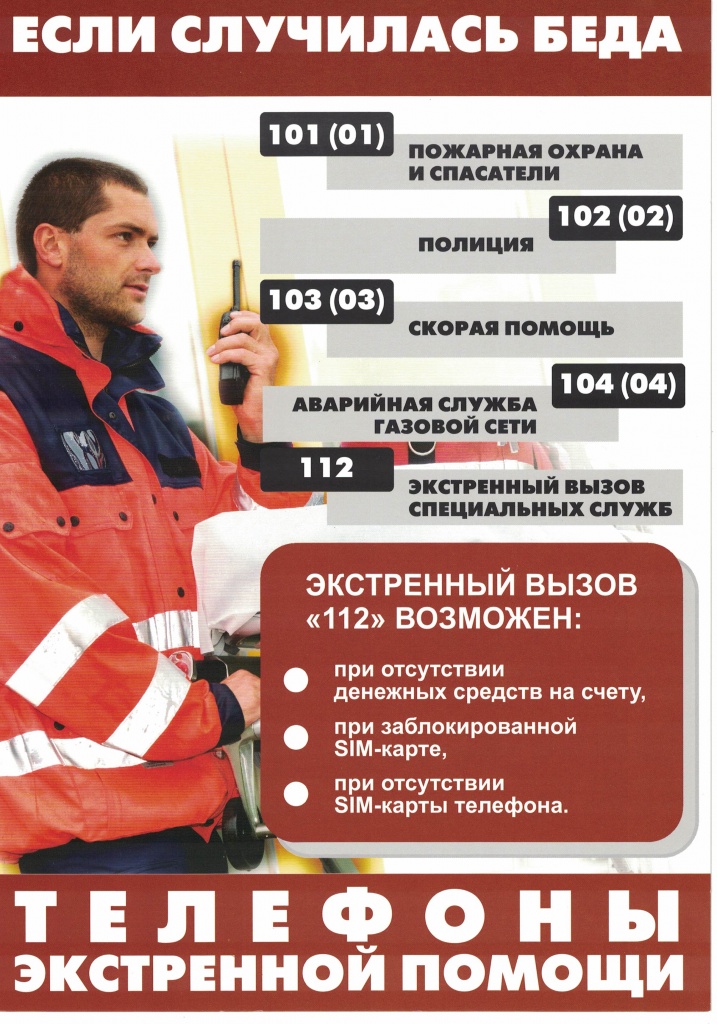Памятка Телефоны экстренных служб